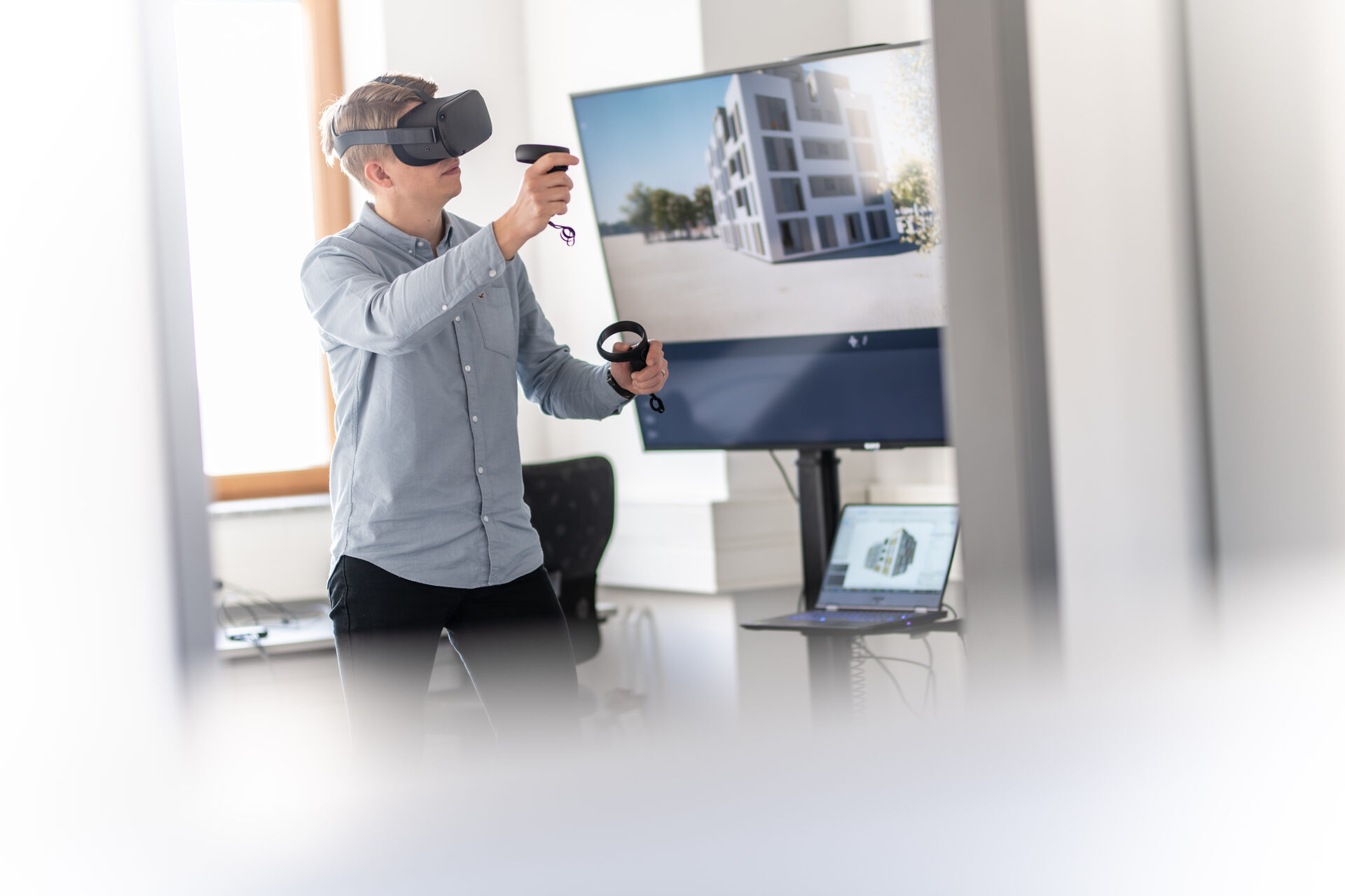Digital-Reality-Anwendungen sind ein Baustein der Digitalisierung im Bauwesen. In der Kommunikation architektonisch-räumlicher Konzepte ebenso wie in der Baupraxis gewinnen unterschiedlichste VR- und AR-Anwendungen zunehmend an Bedeutung. Im VR-Lernlabor können Studierende die Handhabung der Hard- und Software erlernen sowie eigene Lösungen entwickeln und testen. Hierdurch können wir unsere Studierenden adäquat auf diese (neue) Arbeitspraxis vorbereiten und sie mit den Möglichkeiten wie auch den Grenzen der virtuellen und erweiterten Realität vertraut machen.