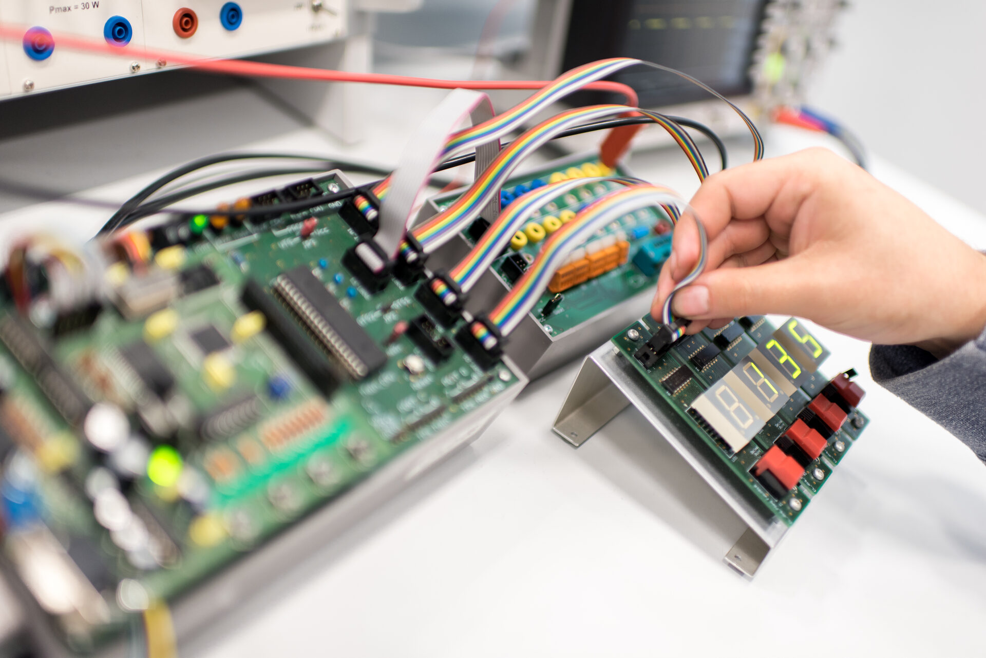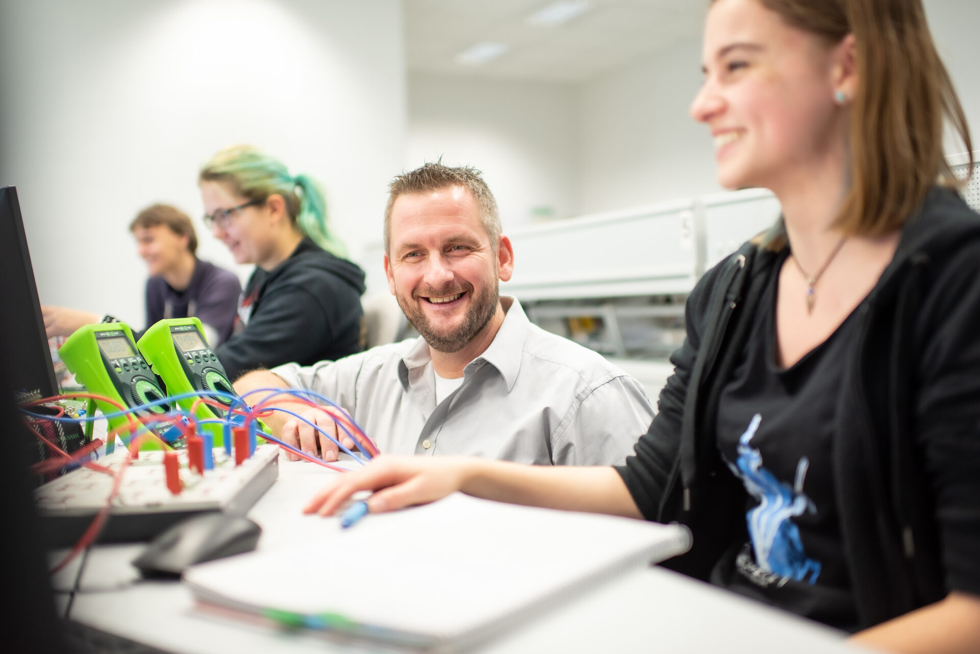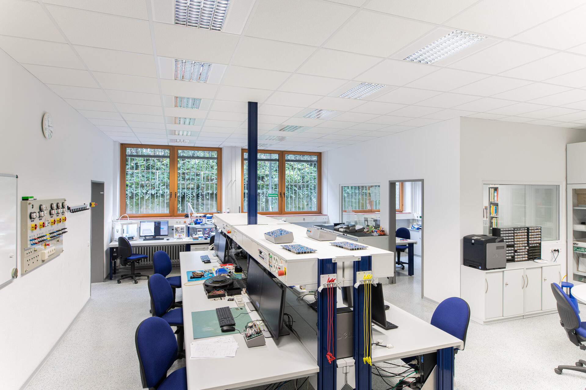The electronics and automation laboratory has 9 workstations for practical courses in digital technology, microcontroller technology, electronics and sensor technology as well as circuit design.