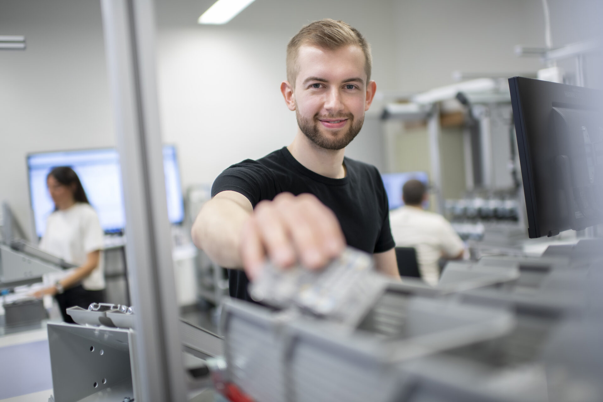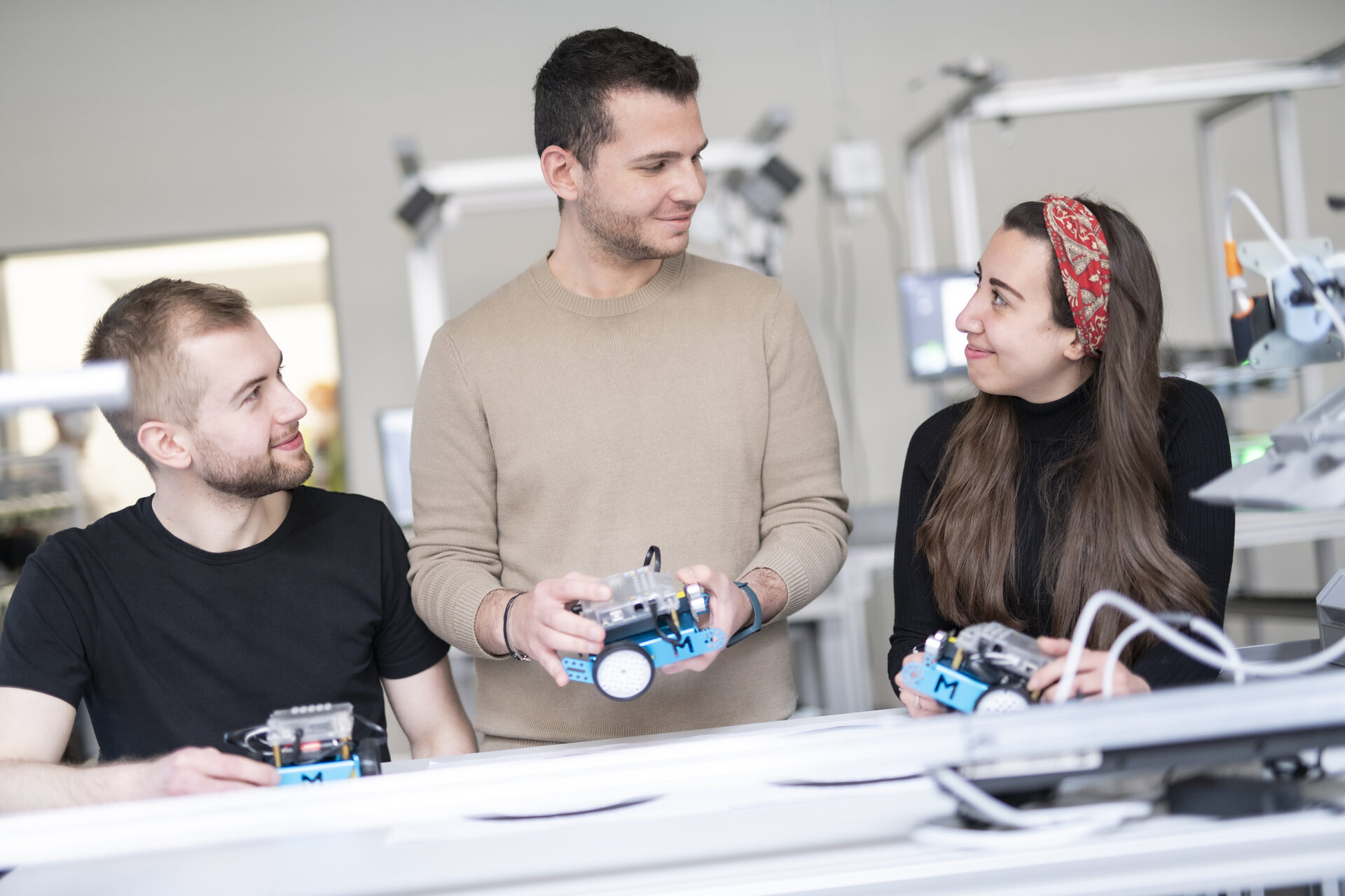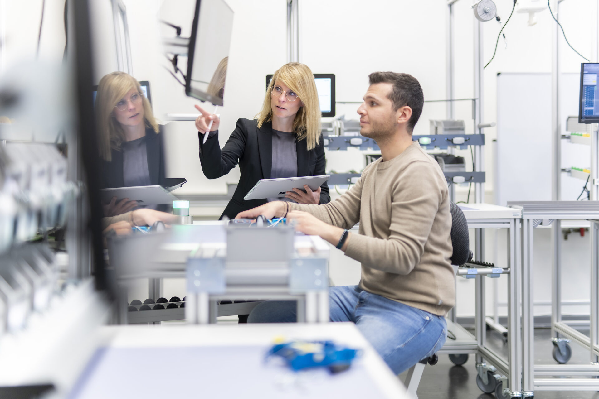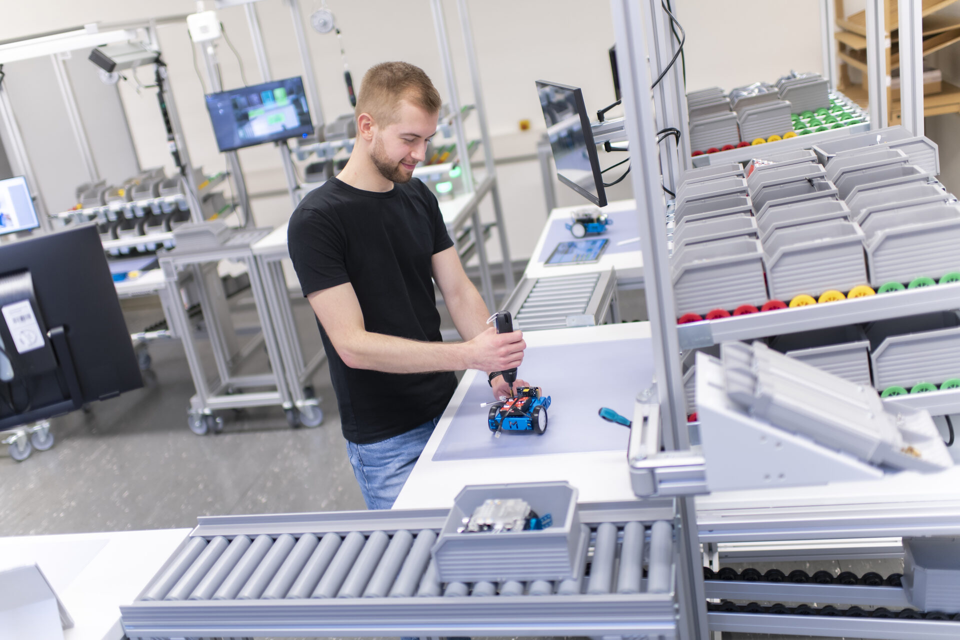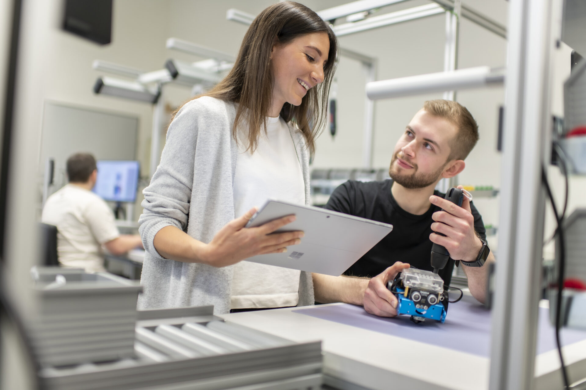 Das Lean Labor kann für studentische Abschluss- und Projektarbeiten genutzt werden. Studierenden können praxisnahe Aufgabenstellungen bearbeiten, indem Sie die Themenstellung aus wissenschaftlicher Sicht beleuchten und ihr entwickeltes Konzept anschließend im Labor praktisch umsetzen.