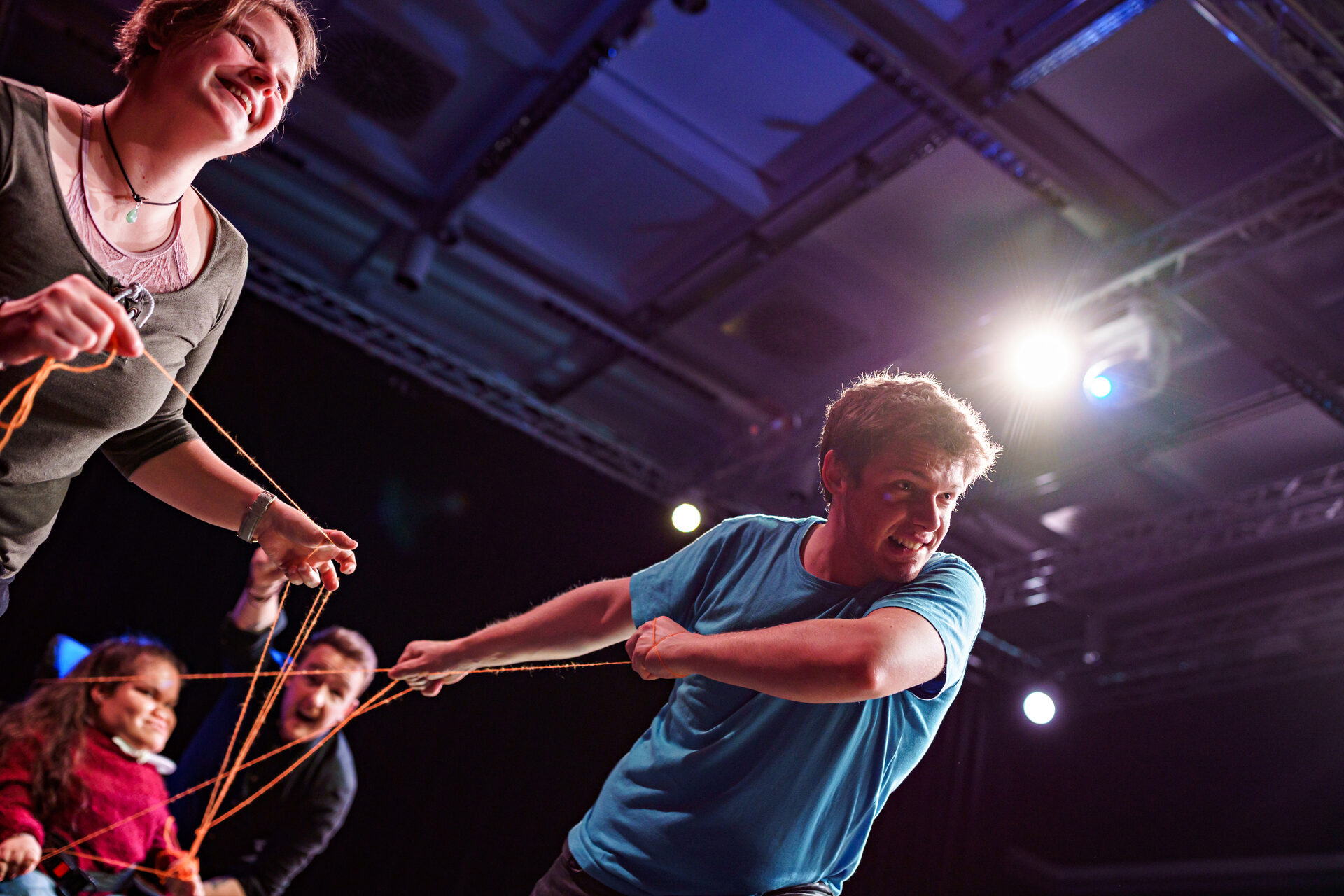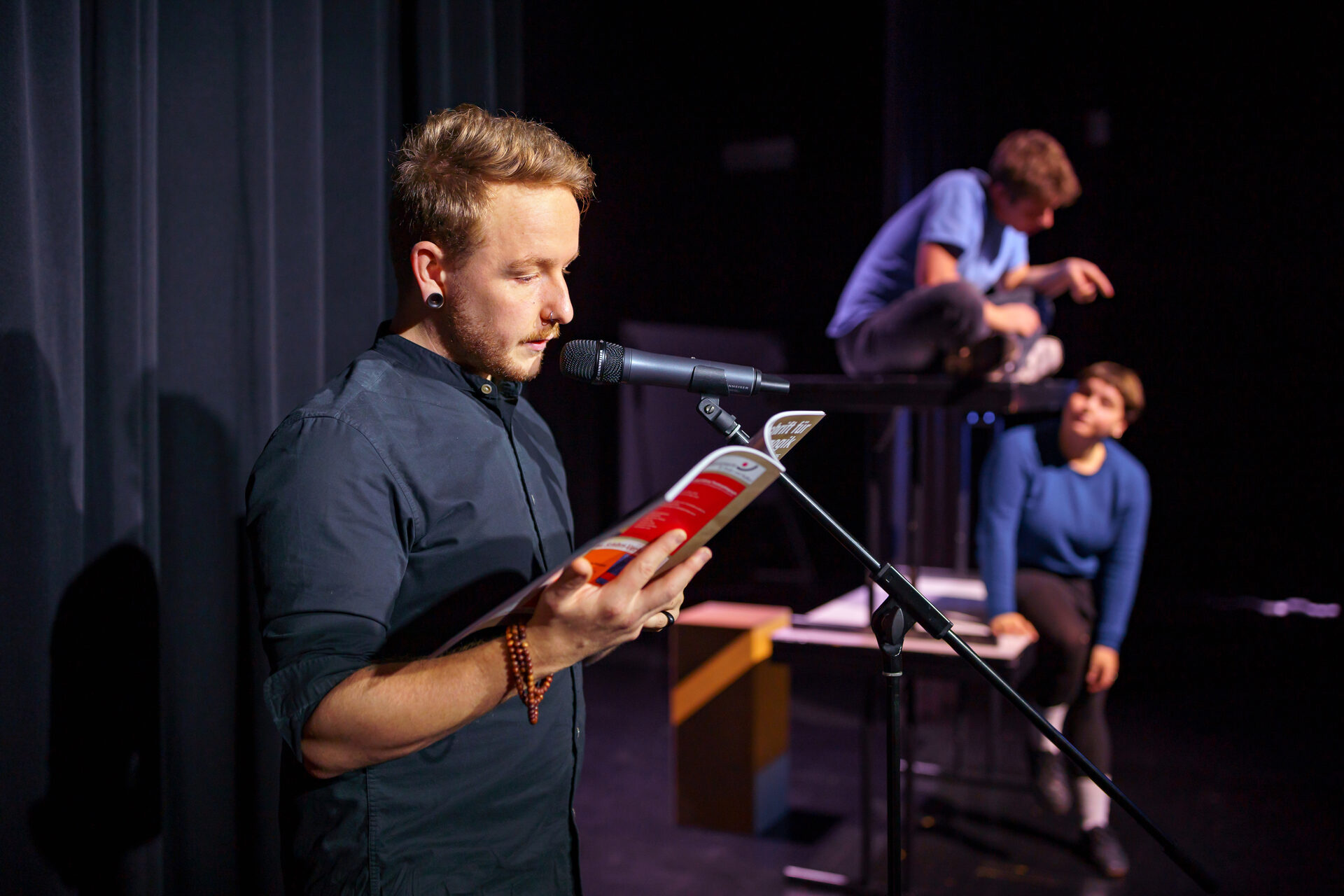 In der vierten Etage der Emil-Figge-Straße 44 findet sich dieser 200 Quadratmeter große Theatersaal, in dem 100 Zuschauer*innen Platz finden. Er verfügt über eine moderne Bühnentechnik, wie beispielsweise eine in mehreren Stufen ausfahrbare Tribüne und eine computergesteuerte Lichtanlage. Flexibilität, Multifunktionalität und einfache Bedienbarkeit der Technik waren wichtige Aspekte bei der Planung und Umsetzung. So ermöglicht der Raum Bühnenausrichtungen in alle vier Richtungen, da er mit einem rundlaufenden Vorhang sowie einem dreh- und schwenkbaren Beleuchtungssystem ausgestattet ist. Der neue Theatersaal präsentiert sich zeitlos und funktional in schwarz-weißer Ästhetik, zu der auch ein geschwärzter Parkettboden gehört. Er ermöglicht eine komplette Verdunklung oder helles Tageslicht, je nach Bedarf. Zur Ausstattung gehören auch Leinwände und Beamer für Vorder- und Rückprojektionen, so dass auch spartenübergreifendes und intermediales Arbeiten und Forschen möglich wird. Genutzt wird das neue Theaterlabor für alle künstlerisch-szenischen Konzeptionen sowie Lehr- und Lernprojekte am Fachbereich Angewandte Sozialwissenschaften. Es ist darüber hinaus Spiel- und Arbeitsstätte für das Profilstudium Theater als Soziale Kunst unter Leitung von Prof. Dr. Norma Köhler und Prof. Dr. Christoph Lutz-Scheurle. Integriert in das Studium der Sozialen Arbeit können Studierende ein Weiterbildungszertifikat des Bundesverbands Theaterpädagogik erwerben. Das Theaterlabor ist auch ein Ort für regionale Kooperationsprojekte aus dem Kontext der Sozialen Arbeit, Kunst/Theater und Kulturelle Bildung.