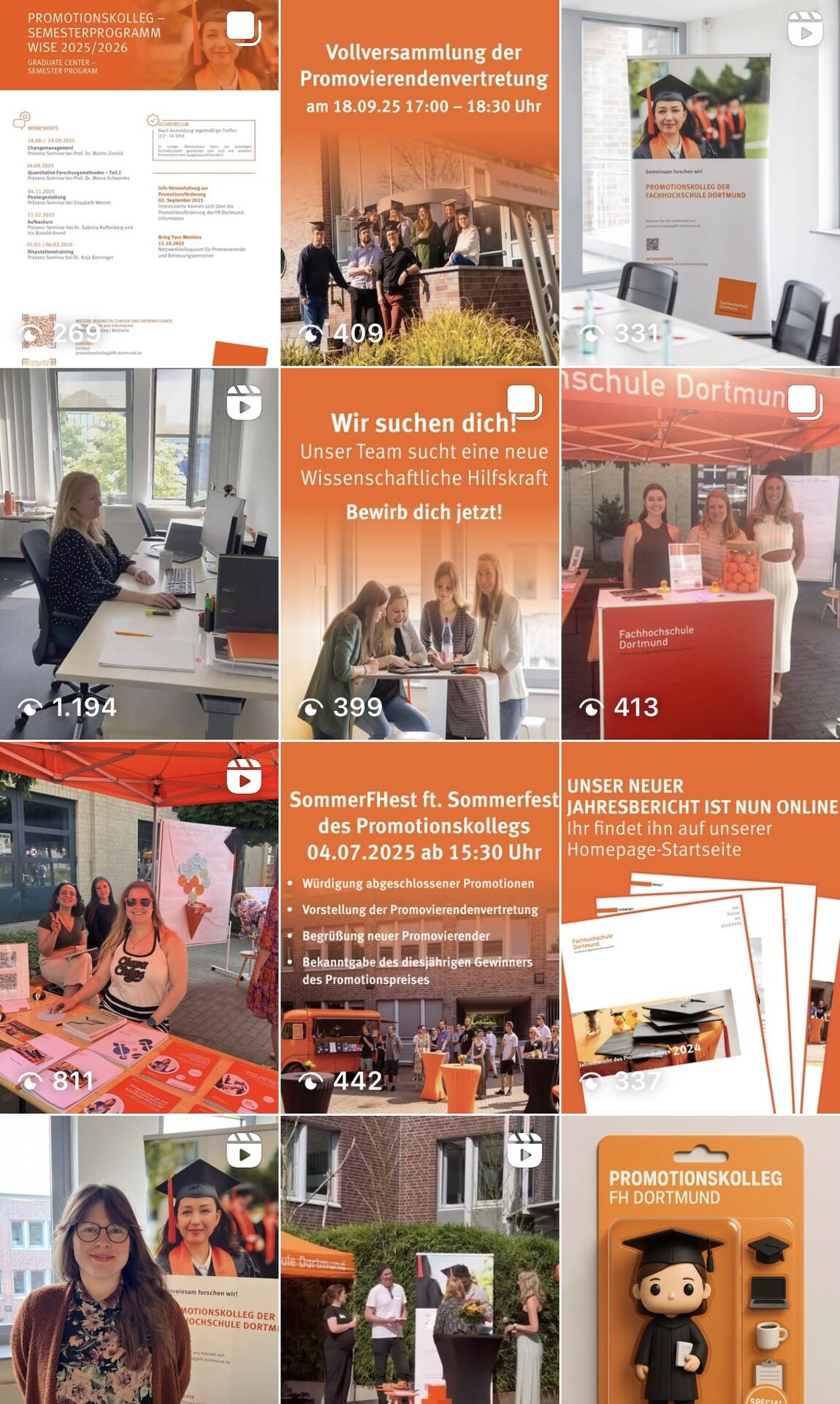 Neben den offiziellen Informationen auf unserer Webseite (Öffnet in einem neuen Tab) und der ILIAS (Öffnet in einem neuen Tab) -Seite, ist das Promotionskolleg auch auf Instagram und LinkedIn vertreten. Unsere beiden Social Media Kanäle bieten weiterführende Einblicke und informieren über aktuelle Entwicklungen, Veranstaltungen oder Workshops. Da unser erster LinkedIn-Auftritt organisational nicht optimal aufgestellt war, starten wir mit frischem Fokus auf unserem neuen LinkedIn-Profil (Öffnet in einem neuen Tab) .