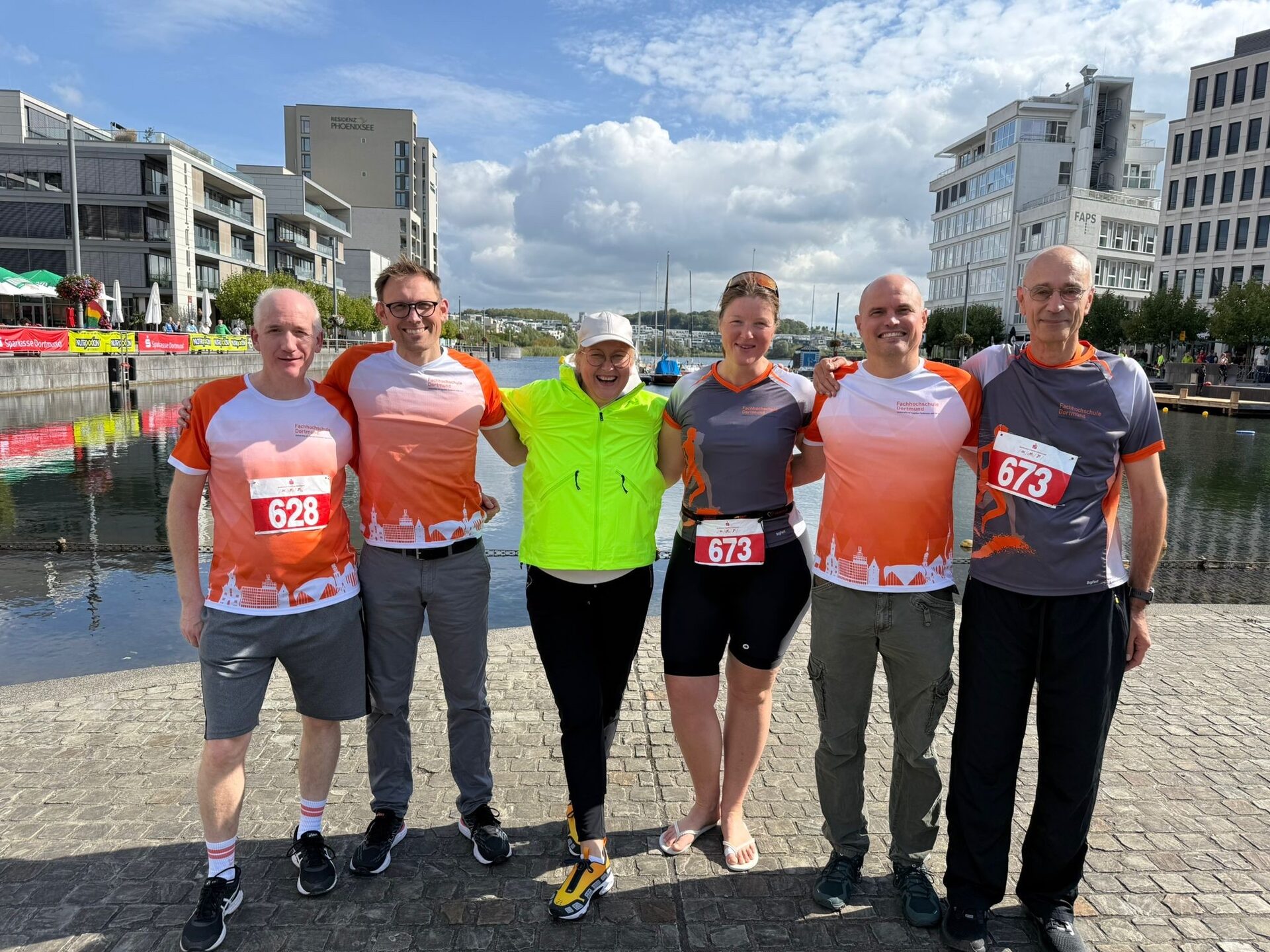„Die Wassertemperatur lag bei 18 Grad, das war schon sehr frisch“, berichtet Ines Tollknäpper, die sich aber mit einem Neopren-Anzug gut ausgestattet hatte. „Es war ein tolles Erlebnis, mit Arbeitskolleg*innen gemeinsam an den Start zu gehen“, schwärmt sie rückblickend.