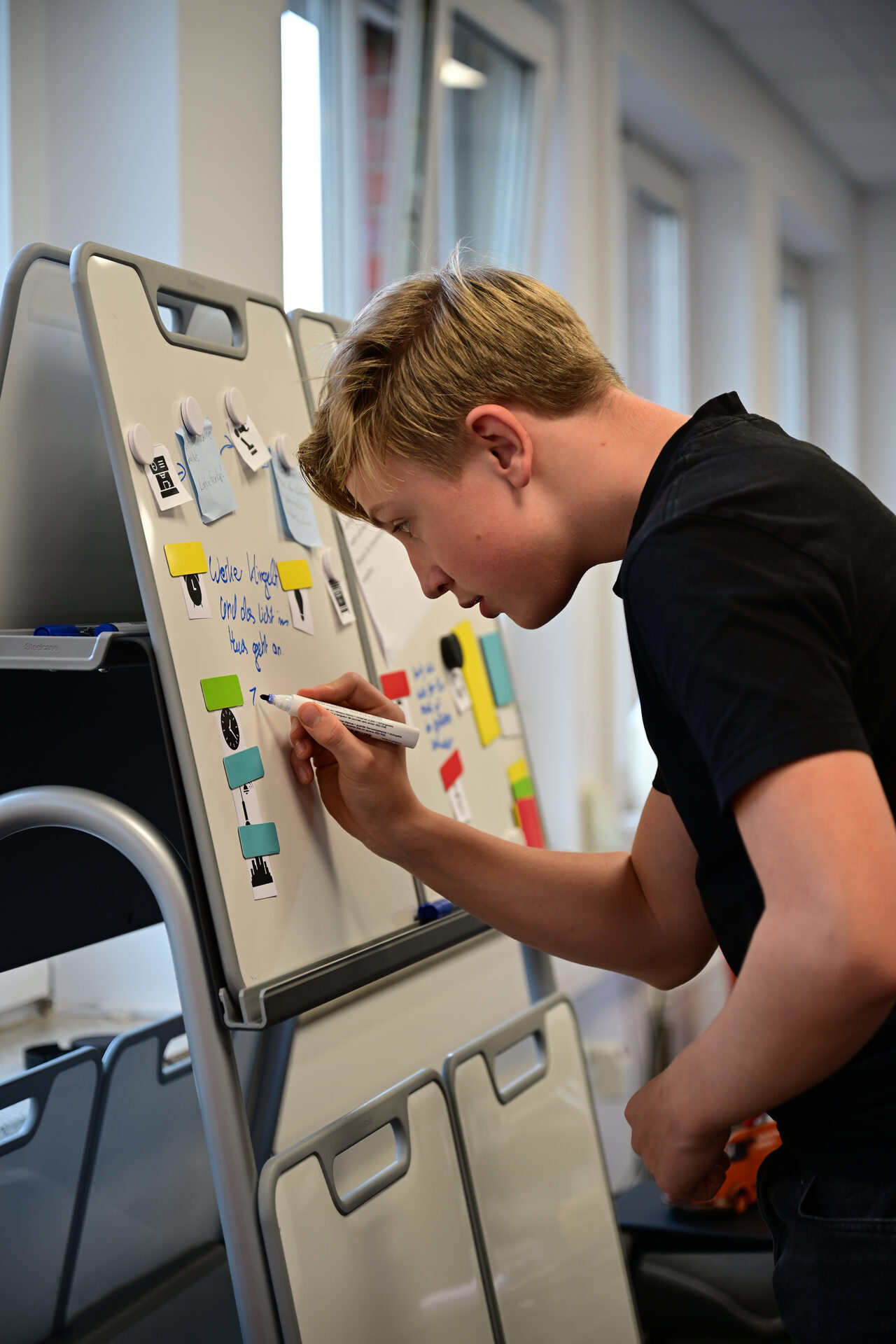 In dem Workshop für Schüler*innen der Klassen 5 bis 9 erarbeitete das IDiAL-Team um Prof. Dr. Sabine Sachweh in Vorträgen und Übungen die Konzepte der digitalen Welt. Als Praxisübung schauten sich die Teilnehmenden auf dem Parkplatz hinter dem Gebäude des Instituts um und notierten systematisch Merkmale der dort geparkten Autos wie Farbe und Hersteller. Ziel war es, die einzelnen Autos händisch zu klassifizieren, um die erhobenen Daten später durch Algorithmen automatisch verarbeiten zu können.