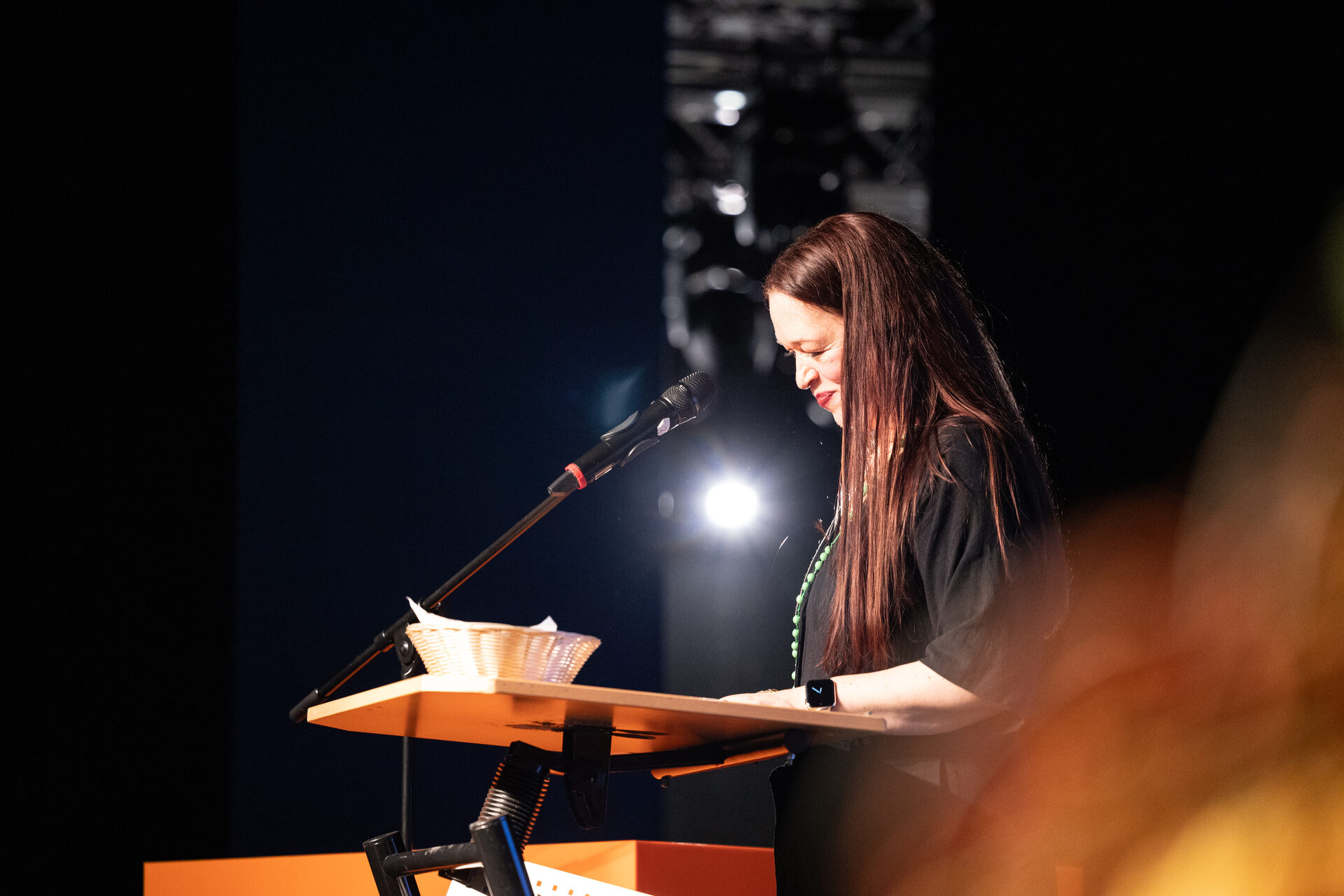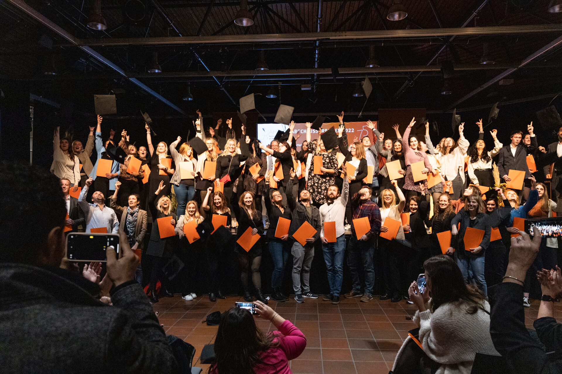 Eröffnet wurde der Festabend von den Schauspieler*innen des Improtheaters Emscherblut. Die Begrüßungs- und Grußworte wechselten sich mit einem Filmbeitrag des Fachbereichs und einem Bühnengespräch mit Absolvent*innen ab.