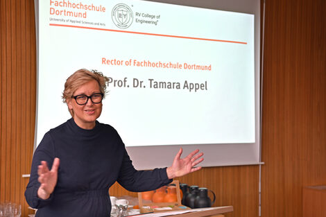 Eine dieser Partnerschaften besteht mit dem RV College of Engineering in Indien. Vertreter der Hochschule waren kürzlich in Dortmund an der FH, um die Zusammenarbeit für Forschende und Studierende weiter zu stärken: etwa durch gemeinsame Projekte, Austauschprogramme oder Doppel-Abschluss-Möglichkeiten. „Letzteres ist für internationale Studierenden wichtig, um leichter auf dem deutschen Arbeitsmarkt Fuß zu fassen“, sagt Prof. Dr. Stephan Weyers, Prorektor für Lehre, Studium und Internationales an der FH. Die Hochschule leiste mit diesem Angebot auch einen wichtigen Beitrag, um dem Fachkräftemangel in Deutschland zu begegnen.