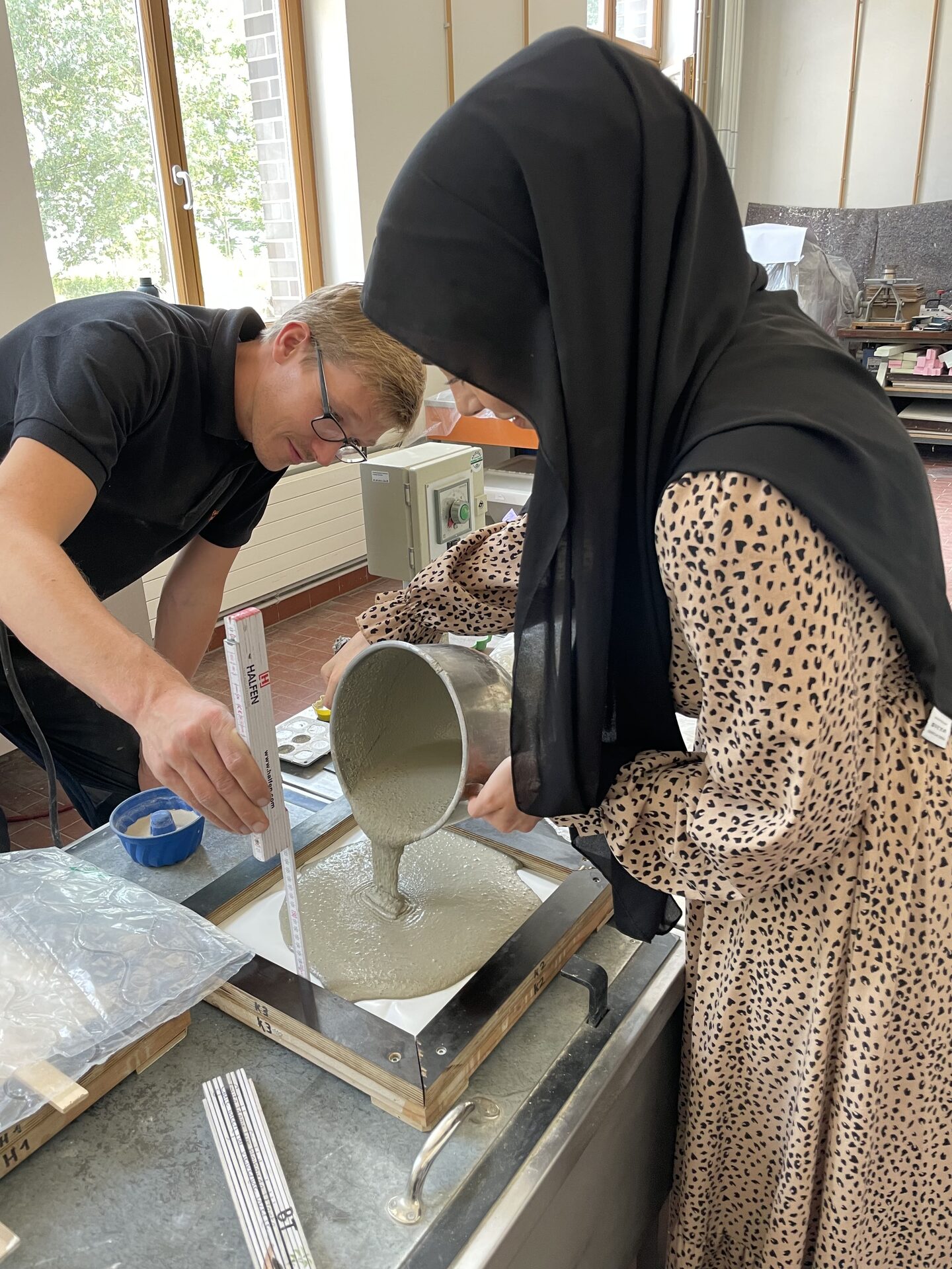 Die von Studierenden des 2. Semesters im Rahmen der semesterbegleitenden Laborübung unter Leitung von Dipl.-Ing. Daniel Horn M.Sc. entwickelten Beton-Exponate wurden mittels innovativen tiefgezogenen Schalungen hergestellt. Anschließend wurden diese mit einem speziellen „Feinkornbeton“ (selbstverdichtend) ausgegossen. Ziel dieser Lehrveranstaltung war die Schulung der Wahrnehmung der Gestaltungsprinzipien und die handwerkliche Fertigung einer Schalung für die Umsetzung im 1:1-Maßstab.